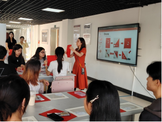 图2:邓砚老师组织刺绣活动体验现场及外宾成果展示